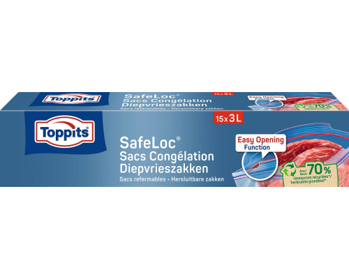 Toppits Safe-Loc Zip Diepvrieszakken 3L 15 stuks