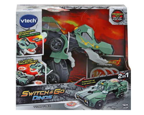 Tijd voor actie! Transformeer Tyler de T-Rex eenvoudig van dino naar een superstoere auto! Lanceer de bijgesloten projectielen uit zijn bek en ontdek meer dan 30 stoere geluiden en zinnen. Bekijk de stoere animaties op het lcd-scherm en kijk naar de cool