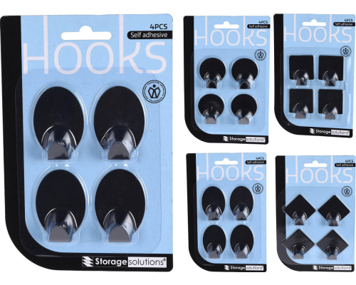 Plakhaakjes set 4 stuks RVS assorti - Zwart