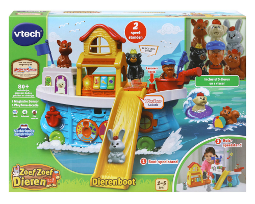 Hijs het anker en ga op een leerzaam avontuur met de Dierenboot! Druk op de toetsen en maak spelenderwijs kennis met dieren, voorwerpen, kleuren en meer. Druk op de knipperende lantaarn, koppel de kajuit los van de boot en plaats de dieren op de PlayZone