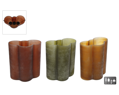 Windlicht Jos 3x XXL groen/bruin/amber glas 16x10x20cm ass.