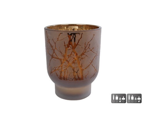Theelichth Twig L bruin glas 10x10x12,5cm