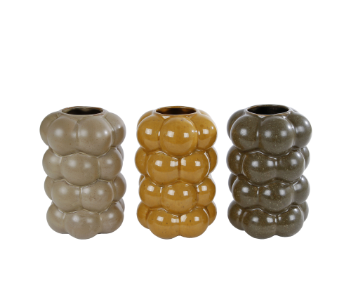 Vaas Bram M beige/amber/d.grijs aardew 12x12x18cm ass.