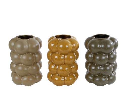 Vaas Bram L beige/amber/d.grijs aardew 15x15x22cm ass.