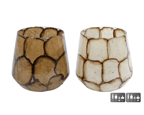 Theelichth George L bruin/crme glas 11x11x10cm ass.