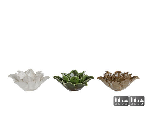 Theelichth Flower M creme/beige/groen awerk 14x14x5,5cm ass.