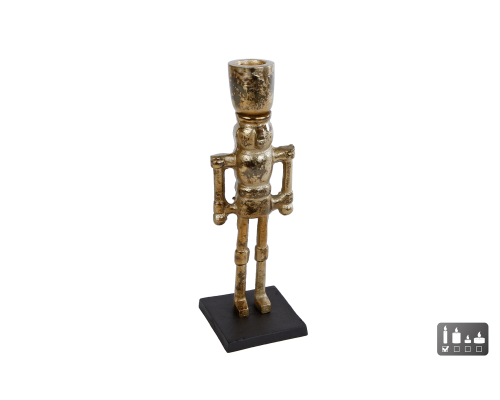 Kandelaar Nutcracker goud/zwart aluminium 3x6x22cm