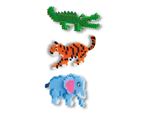 Met deze strijkkralen safari dieren set maak jij echte 3D dieren. Maak een olifant, tijger of krokodil die uit laagjes strijkkralen kan worden opgebouwd. Door de laagjes op de drukwerk delen te lijmen maak jij 3D safari dieren. Zo komt de safari echt tot