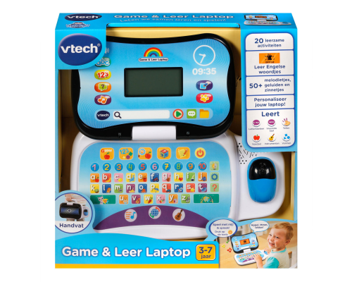 Met de Game & Leer Laptop beleef je urenlang game- en leerplezier! De laptop is overal mee naartoe te nemen door het handige handvat. Je gaat zelfstandig op avontuur en ontdekt de letters van het alfabet, cijfers, vormen, dieren, Engelse woorden en nog v