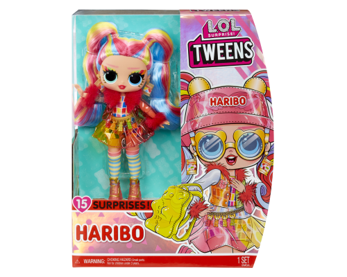 Maak kennis met de limited edition L.O.L. Surprise Tweens Haribo-modepop Holly Happy, de grote zus van de minipop Rosy Bear! Pak 15 verrassingen uit en bewonder de vrolijke en brutale mode met snoepthema van Holly Happy! Holly Happy is grappig, aardig en