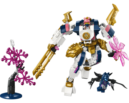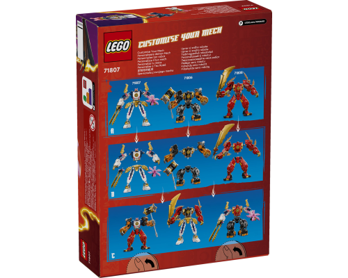 Een gloednieuwe, aanpasbare NINJAGO mechafiguur met afneembare benen, armen, wapens en borst, zodat kinderen hun eigen mechabouwspeelgoed kunnen ontwerpen.