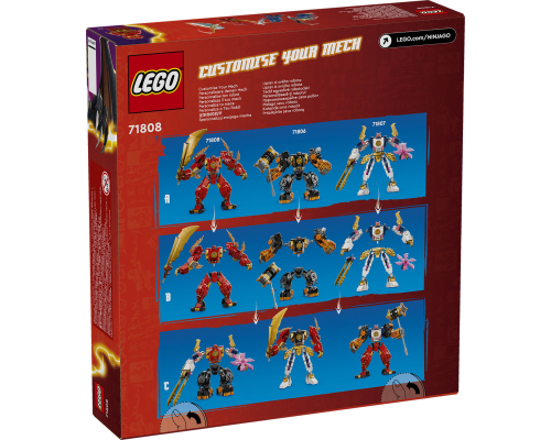 Met dit unieke mechabouwspeelgoed kunnen kinderen hun eigen aangepaste LEGO mecha ontwerpen om confrontaties na te spelen met 4 NINJAGO personages, waaronder Kai.