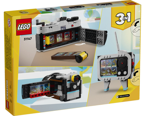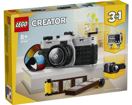 Met de LEGO Creator 3in1 retroset kunnen kinderen een fotocamera in retrostijl bouwen en deze vervolgens ombouwen tot een videocamera of tv voor fantasierijk speelplezier en fraaie displaymodellen.