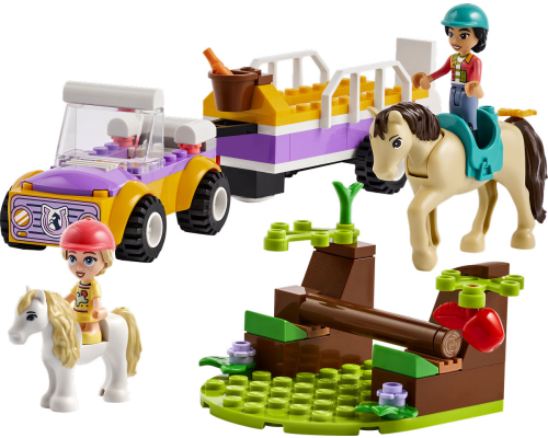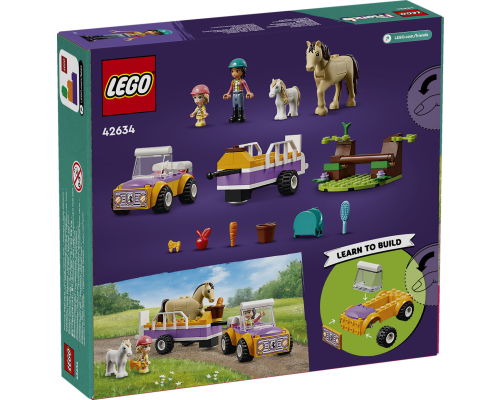 Kinderen leren bouwen met deze LEGO Friends Paard en pony aanhangwagen bouwset, een leuke cadeautip voor kinderen die van rollenspellen houden.