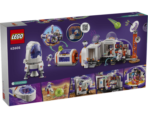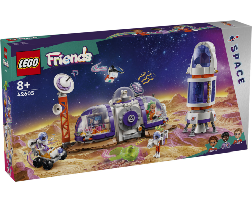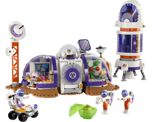 De LEGO Friends Ruimtebasis op Mars en raket bouw- en speelset voor kinderen bevat een bouwbare raket, een verkenningsrover, een onderzoeksbasis en 4 personages.