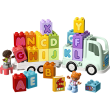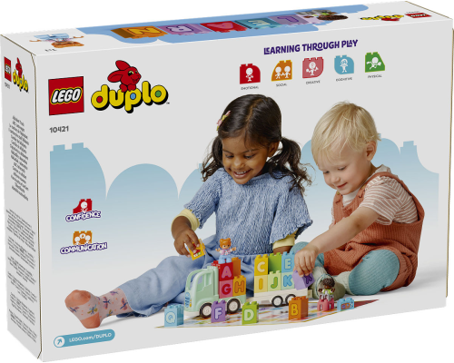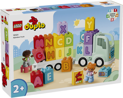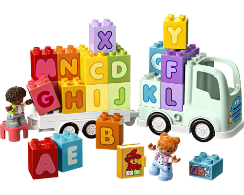 Klim aan boord van de herbouwbare LEGO DUPLO Alfabetvrachtwagen waarmee peuters op een leuke manier hun ABC kunnen leren.