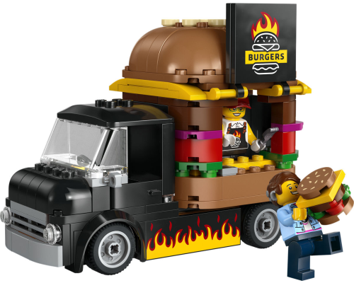 Kinderen kunnen het lekkerste fastfood in LEGO City serveren met deze leuke speelset, inclusief een coole hamburgertruck en een minifiguur van een verkoper.