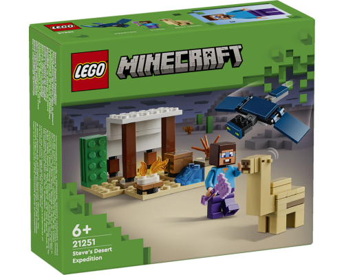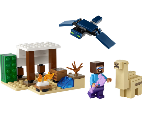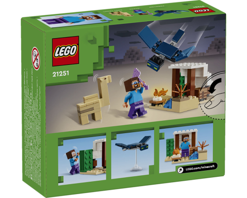 Dit cadeau voor gamers is de eerste LEGO Minecraft speelgoedset in het woestijnbioom, waarin Minecraft personage Steve het opneemt tegen een vliegend fantoom.