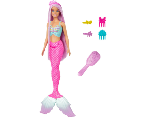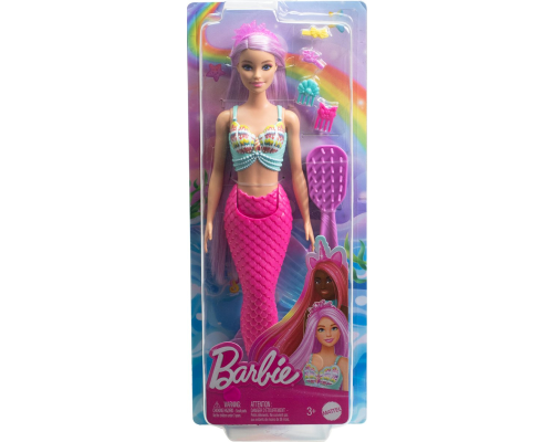 Deze fantasievolle Barbie zeemeerminpop heeft extra lang, kleurrijk roze haar. Kinderen kunnen haar haar stylen met de accessoires en het haar vervolgens borstelen voor eindeloos veel speelpret. Met de betoverende elementen, zoals een op de oceaan geïnspi