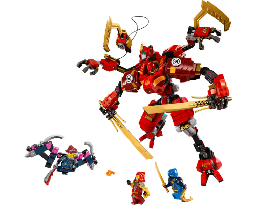 Met de LEGO NINJAGO Kai's ninjaklimmecha speelset kunnen kinderen avonturen naspelen met een verstelbare mechafiguur en 4 minifiguren van NINJAGO personages.