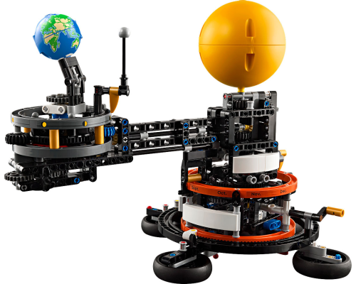 LEGO Technic De aarde en de maan in beweging is een bouwmodel van een draaibare aarde, zon en maan voor kinderen die dol zijn op ruimtespeelsets en astronomiespeelgoed.