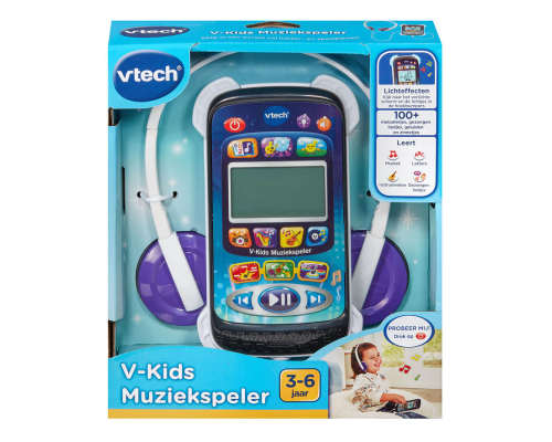 Zing, speel, dans en leer met deze coole V-Kids Muziekspeler! Druk op de toetsen, luister naar 11 gezongen liedjes en kijk naar de vrolijke animaties op het verlichte scherm. Speel 3 muziekgerelateerde spellen en kom helemaal tot rust tijdens de speelst