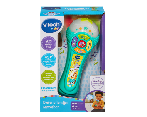 Pak de microfoon en zing met de dieren! Spreek en zing in de microfoon om je stem te versterken en kijk naar de mooie lichteffecten. Zinge mee met 15 melodietjes en 2 gezongen liedjes terwijl je kennismaakt met verschillende dieren en hun geluiden.