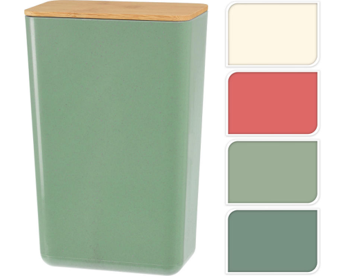 Afvalbakje met bamboe deksel 13x8x21cm - assorti