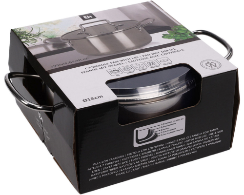 EH Kookpan RVS met glazen deksel - 18cm