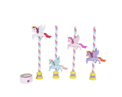 Unicorn potlood met gum set 4 stuks en puntenslijper