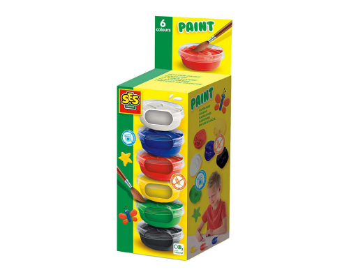 De plakkaatverf van SES Creative staat bekend om haar goede kwaliteit en heldere, dekkende kleuren. \nDe plakkaatverf set bestaat uit de zes kleuren rood, blauw, wit, zwart, groen en geel. \nDoor de kleuren te mengen zijn de mogelijkheden eindeloos en kun