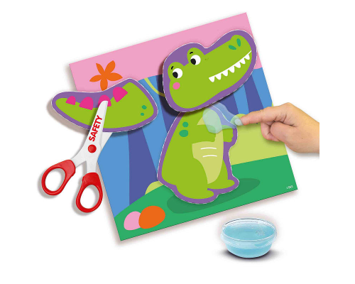 Knippen en plakken is voor kinderen eenvoudig te leren met deze set van SES Creative. De veilige kinderschaar knipt papier, maar is veilig voor haren, vingers en textiel! Zo kunnen jonge kinderen zelf aan de slag en de vormen één voor één uitknippen. De v