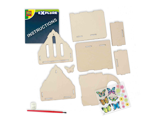Het is tijd voor meer vlinders in de tuin of het balkon! Het Explore vlinderhotel kan door kinderen zelf gebouwd en versierd worden met vlinder stickers. Dit STEM-speelgoed is niet alleen leuk, maar ook erg leerzaam. Bouw stap voor stap het houten vlinder