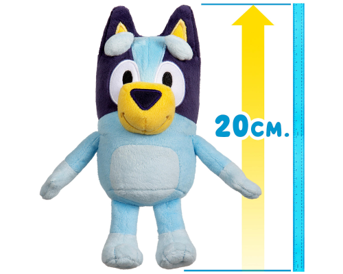 Kijk jij ook altijd naar de avonturen van Bluey? Bluey is een 6 jaar oude Heeler-hond die samen met haar familie de leukste avonturen beleeft. Speel nu zelf met deze kleine pluchen Bluey. Ze is superzacht en wil heel graag met jou knuffelen! Bluey is ca.
