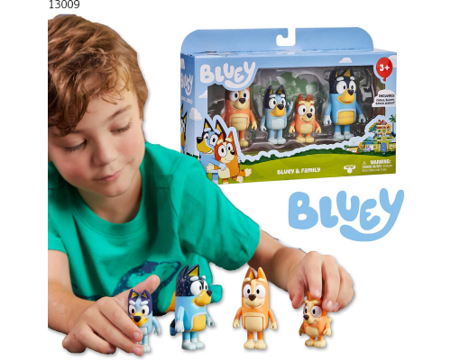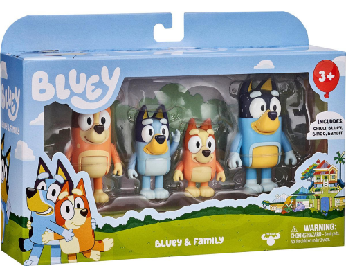 Kijk jij ook altijd naar de avonturen van Bluey? Bluey is een 6 jaar oude Heeler-hond die samen met haar familie de leukste avonturen beleeft. Speel nu zelf met Bluey en haar gezin! Deze Speelfigurenset bevat alle vier de leden van Bluey's familie - Bluey