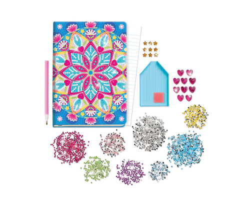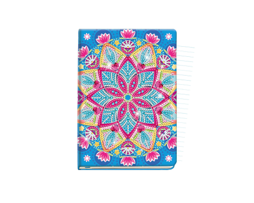 Versier je eigen notitieboek met harde kaft en bedek de gehele voorzijde met 2000+ diamond paint strass steentjes incl. voorbedrukt mandala dessin en 2000+ glittersteentjes (gewicht product 359 gr.)
