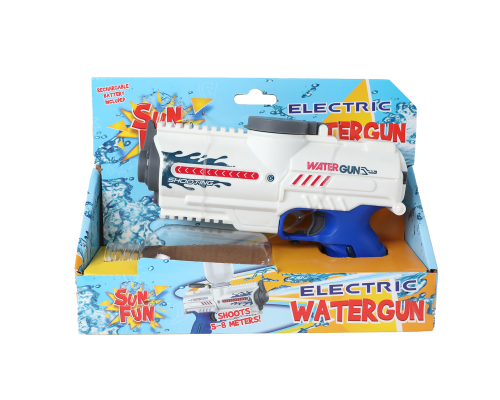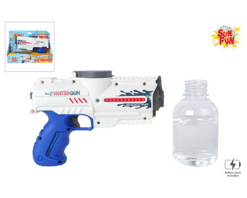 Sun Fun waterpistool elektrisch met fles 18cm wit/blauw