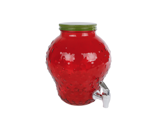 Kan Aardbei met tapkraantje rood glas 19x19x25cm