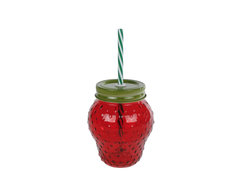 Drinkglas Aardbei deksel/rietje rood glas 11x11x13cm
