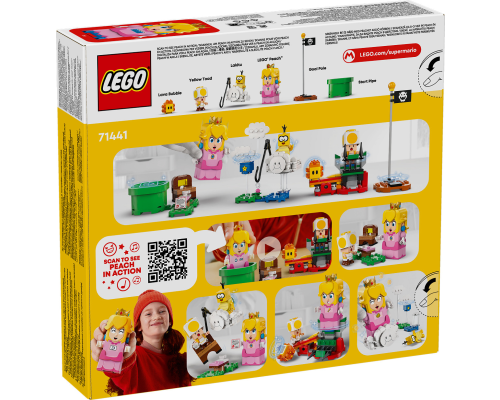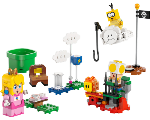 Laat kinderen een interactief theekransje naspelen met LEGO Peach, vlieg op Lakitu's wolk en red een gele Toad met dit leuke prinsessencadeau.