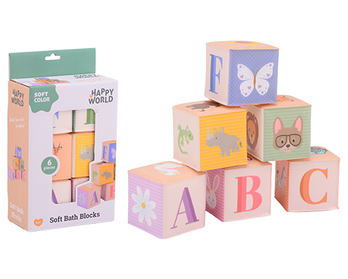 Happy World zachte blokken zachte kleuren - 6 stuks in doos
