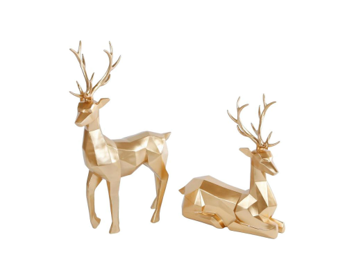 Sculptuur GeoDeer ant.goud a2 polystone 25x9x29/25x10x39