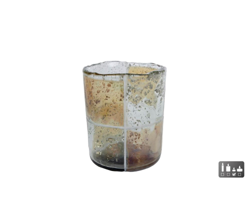 Theelichthouder Blocks S bruin/groen glas 7,5x7,5x9cm