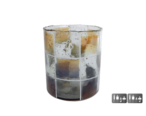 Theelichthouder Blocks L bruin/groen glas 11x11x13cm