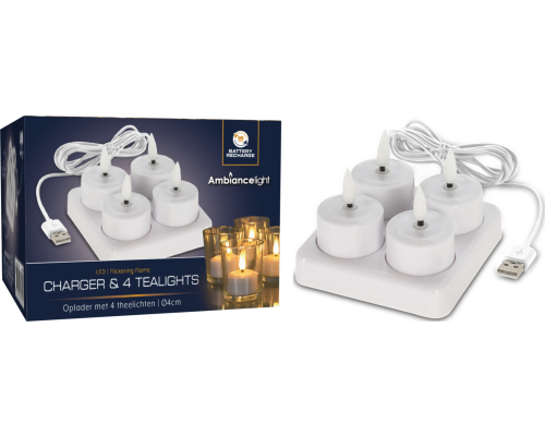 Theelicht LED 4 stuks oplaadbaar incl. oplaadstation