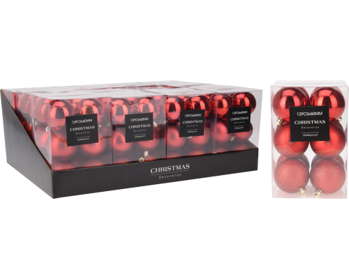 Kerstbal Onbreekbaar 6.00cm 12 stuks - Rood