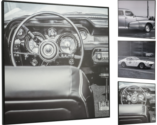 Wanddeco MDF in frame 38x38cm Classic cars assorti