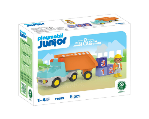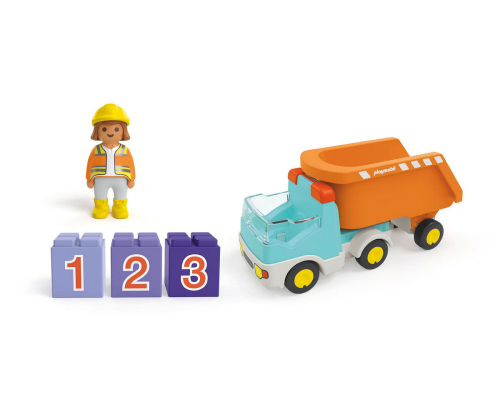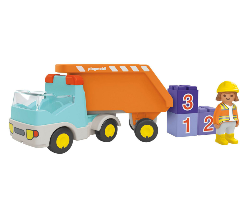 PLAYMOBIL 70126 Kiepwagen 1.2.3 De stoere vouwelijke bouwvakker vervoert de zware bouwstenen met de kiepwagen met kantelfunctie. Afmetingen: 19 x 7 x 10 (LxBxH)