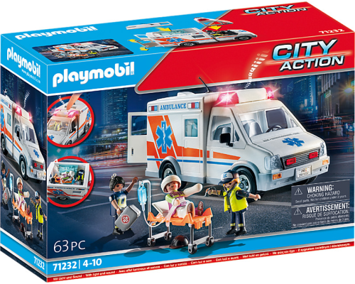 Breng hulp naar degenen in nood en ga op spannende reddingsmissies met deze gave Playmobil City Action-ambulance.
