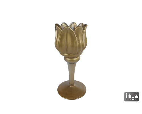 Theelichthouder Tulip mat goud glas 8x8x16cm